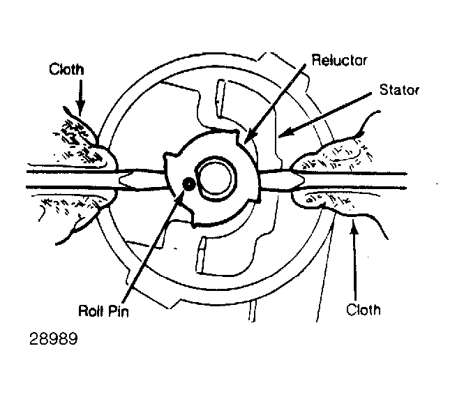 - Carefully pry upward on reluctor with 2 screwdrivers cushioned with shop rags to prevent damage. See Fig 1. Use care not to damage reluctor or stator.