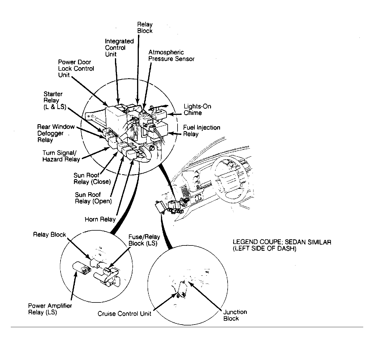 | Power Door Lock Control Unit | Under left side of dash, above relay block. See Figure . | |