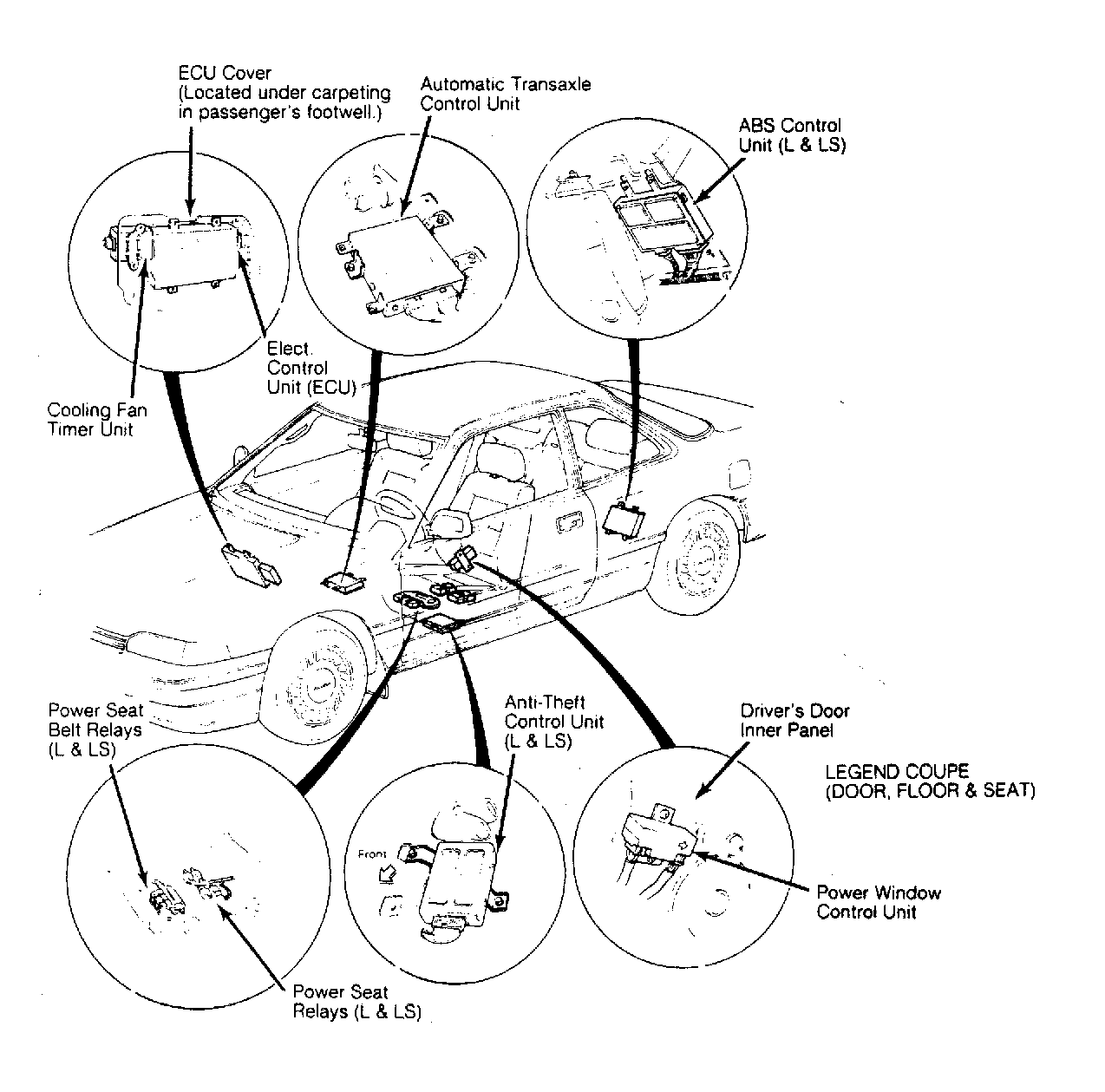 | Automatic Transaxle Control Unit (Coupe) | On floor, under passenger's seat. See Figure . | |