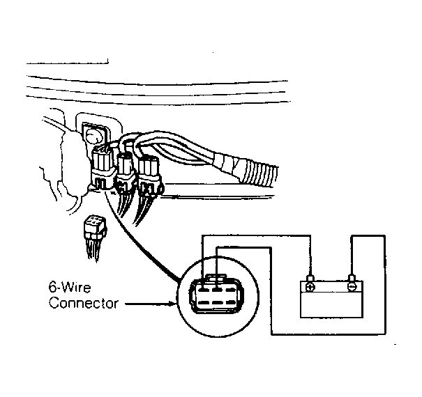 - If 8 in. Hg is not present, disconnect 6-pin connector from emission control box. Connect Black/Yellow wire terminal to battery positive terminal and White wire terminal to negative battery terminal. See Fig 1 . If gauge does not read 8 in. Hg within one second, replace EGR control solenoid valve.