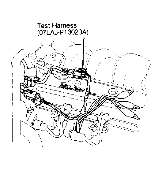 - If gauge reads 8 in. Hg within one second, turn ignition off. Reconnect 4-pin connector at control box. Connect Test Harness (07LAJ-PT3020A ) to EGR lift sensor. See Fig 2 . Turn ignition on. Measure voltage between test harness Red (positive) and Green (negative) wires. If about 5 volts are present, go to step 12).