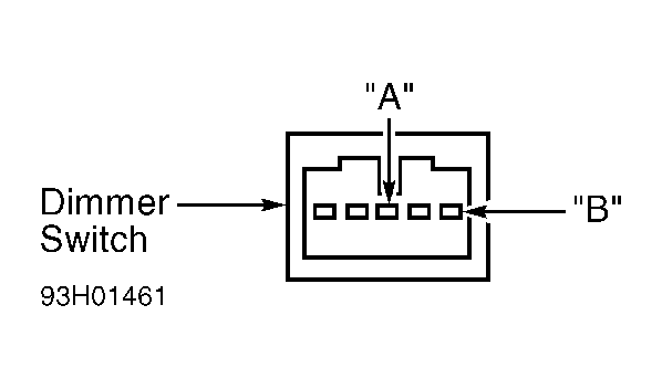 - Using a DVOM, measure resistance of dimmer switch terminals "A" and "B". See Fig 1