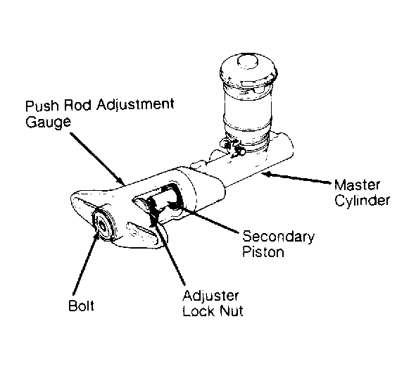 - Install Push Rod Adjustment Gauge (07JAG-SD40100). Ensure adjusting bolt is flush with end of master cylinder. See Fig 1 . Ensure gasket is in position when adjusting rod clearance.