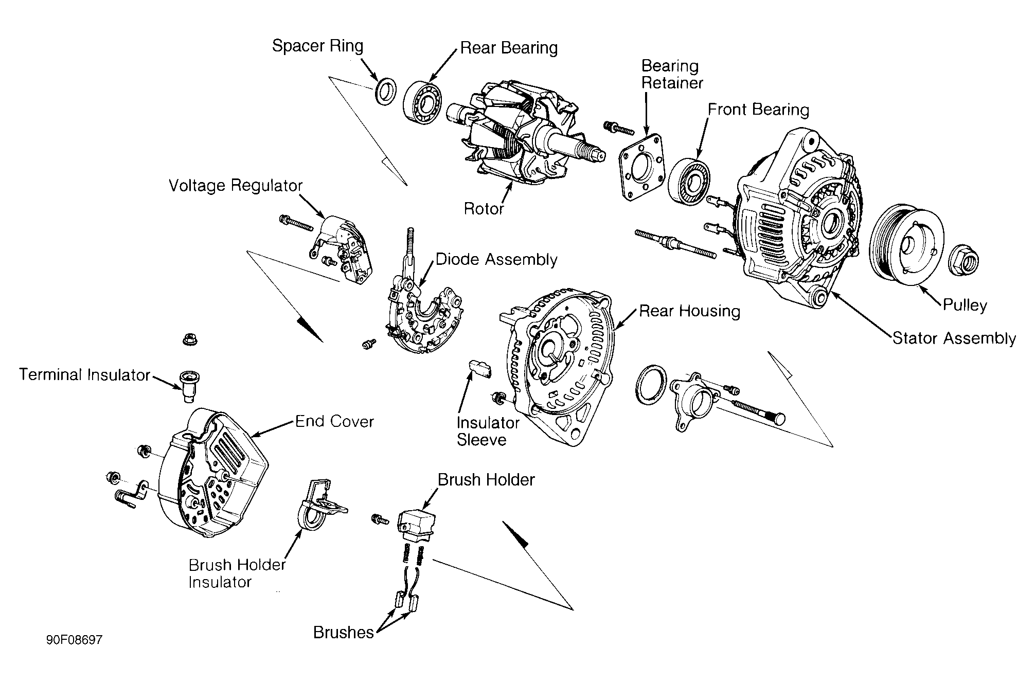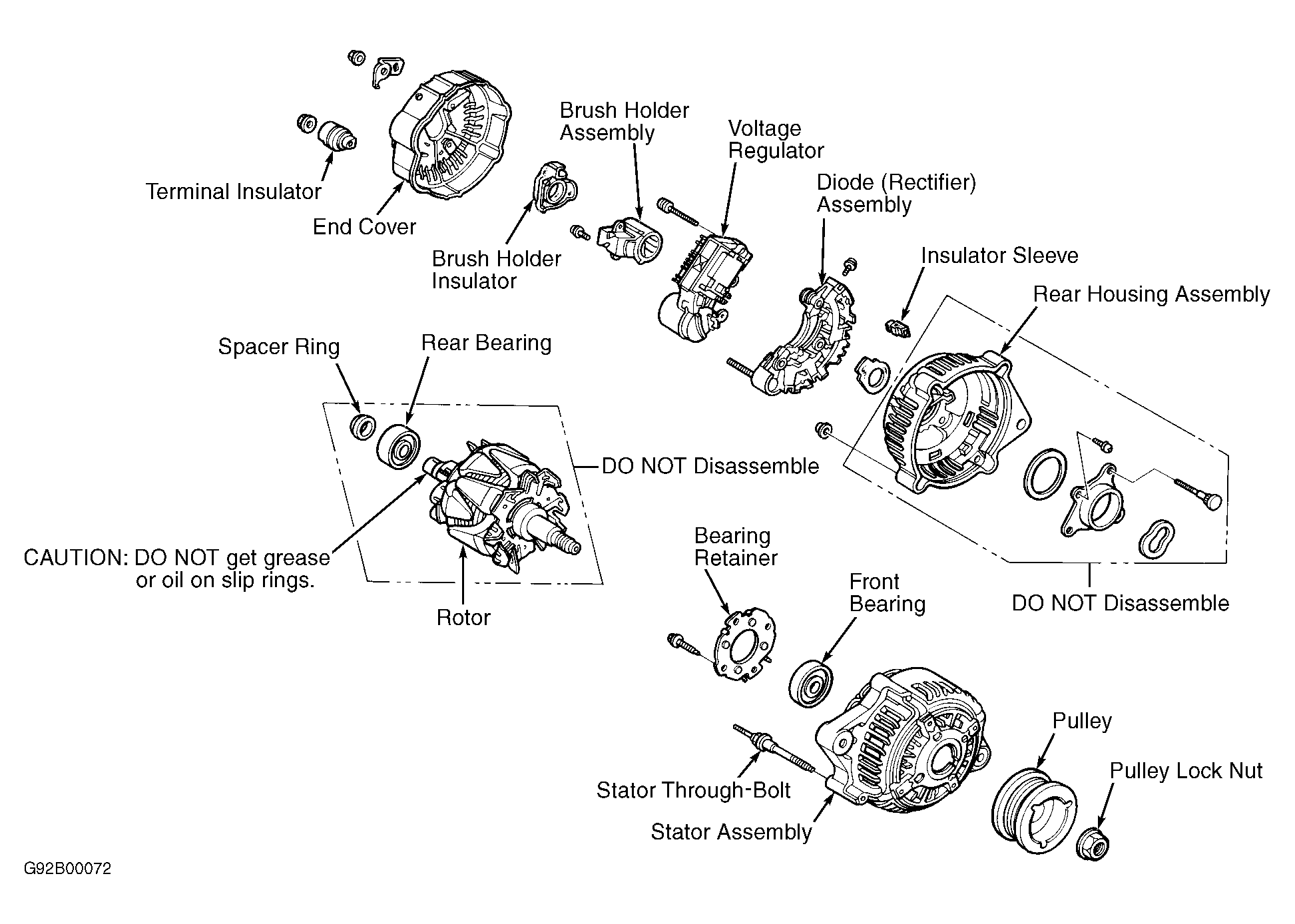 Fig 2: Exploded View Of Nippondenso Alternator (Legend)
