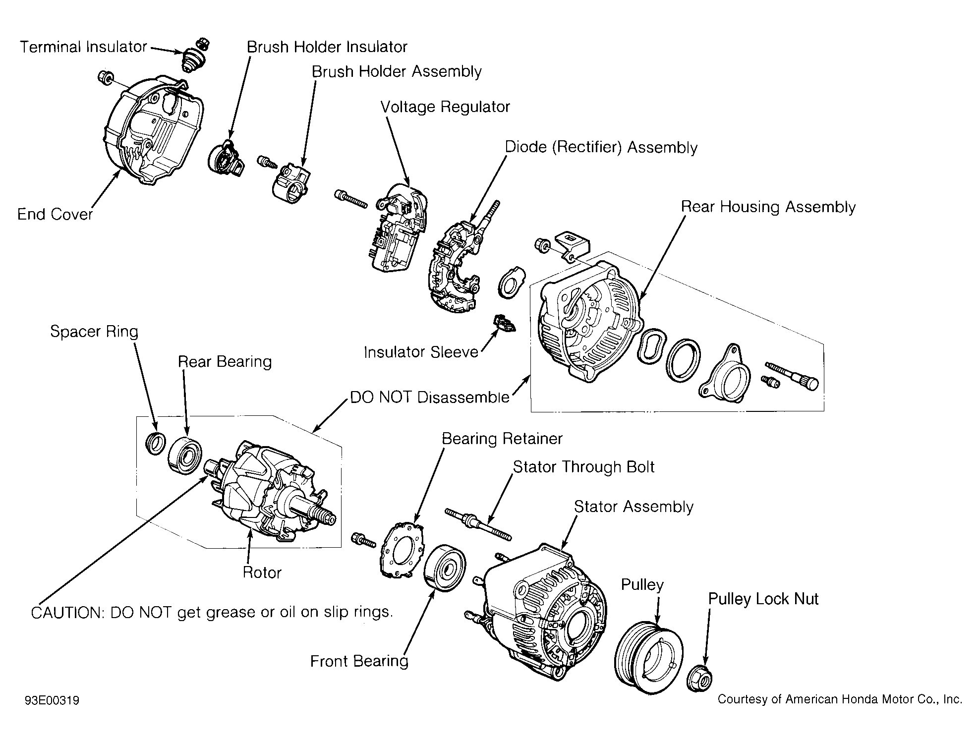 Fig 1: Exploded View Of Nippondenso Alternator (Integra)