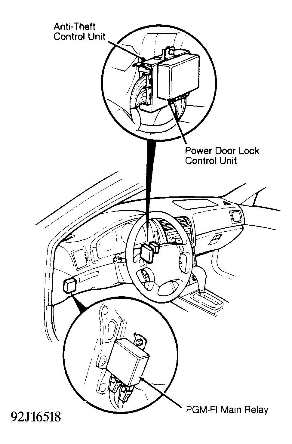 | Power Door Lock Control Unit | Behind left side of dash, to right of steering column. See Figure . | |