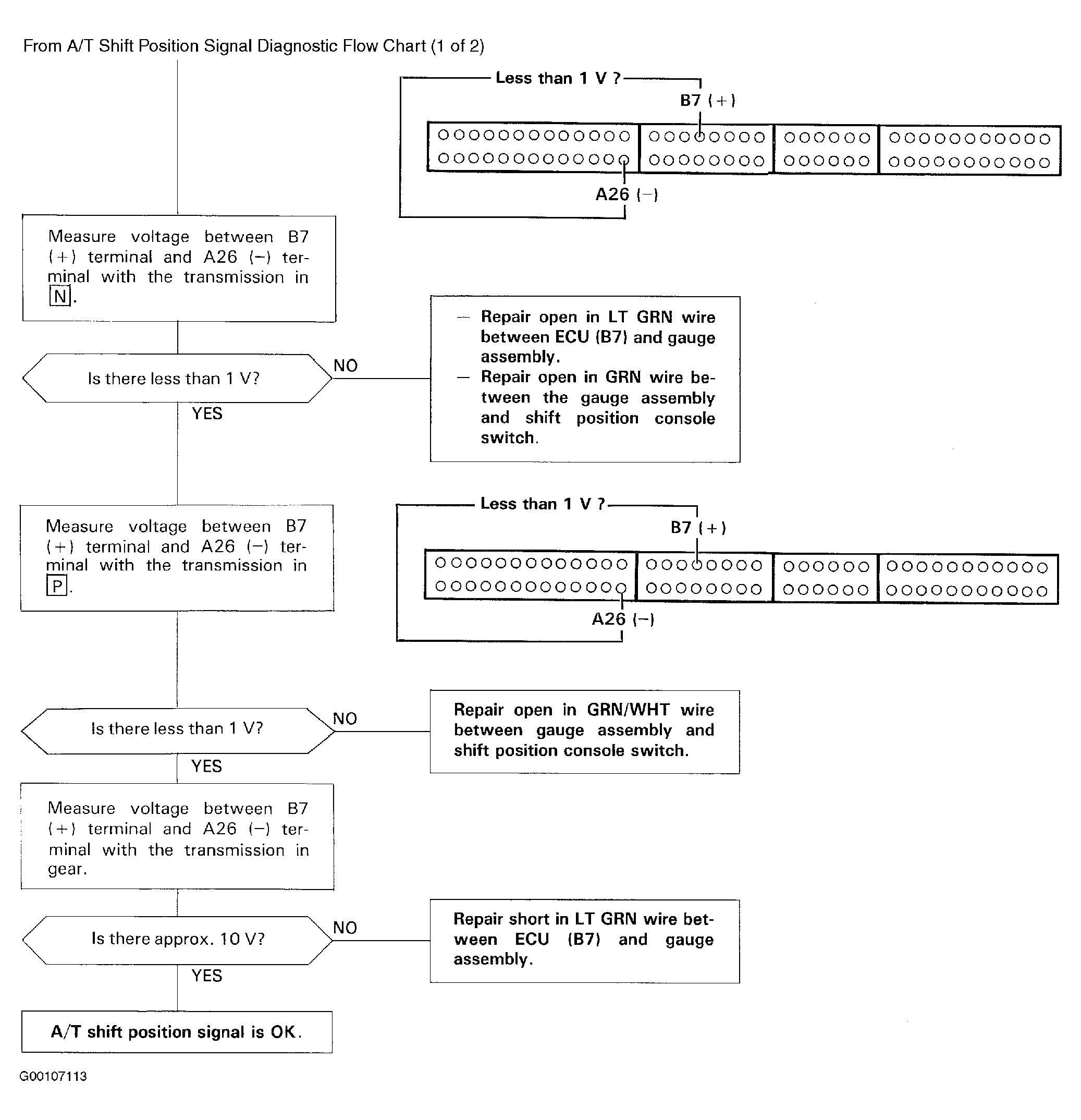 Fig 1: A/T Shift Position Signal Diagnostic Flow Chart (1 Of 2)