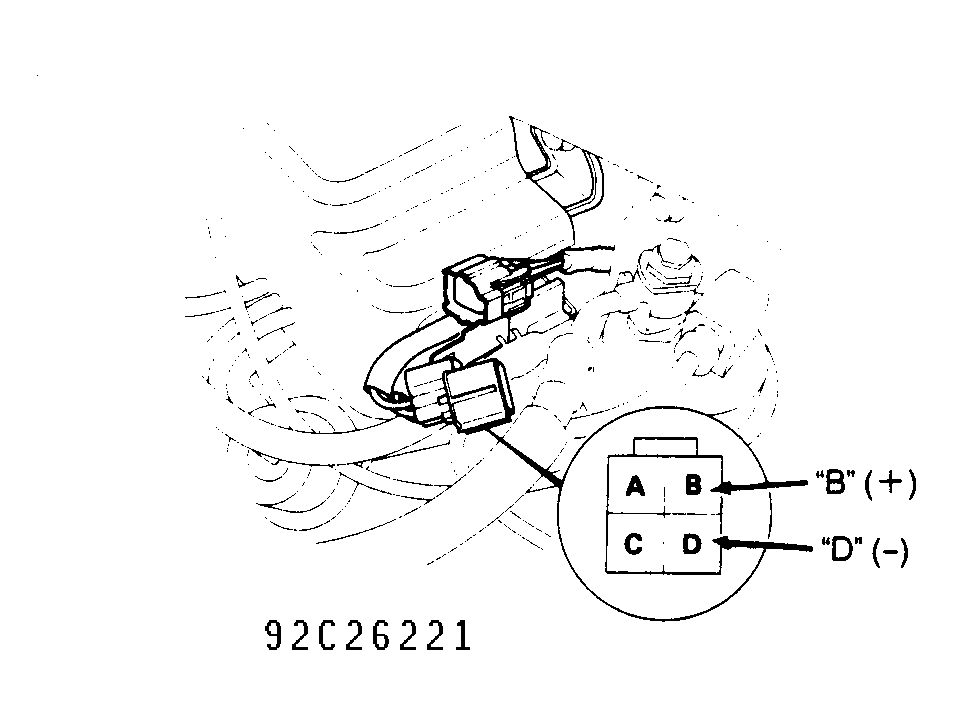 . While observing vacuum gauge, connect terminal "D" to negative battery terminal.