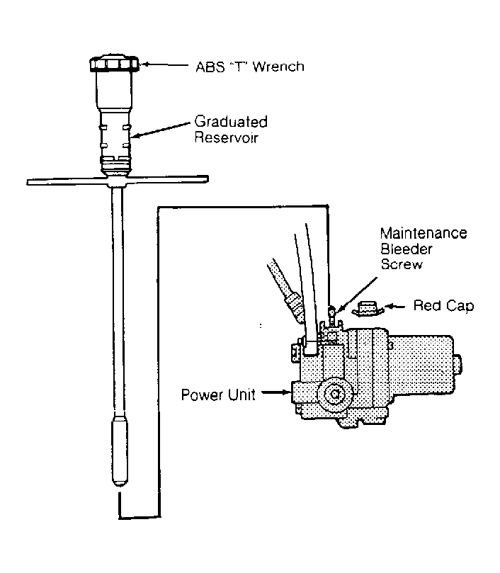 - Fill modulator reservoir to MAX level. Bleed high-pressure fluid from maintenance bleeder screw. See Figure . Start engine, and release parking brake. Turn ABS tester mode selector to "2" position. Depress brake pedal firmly and press START TEST button.