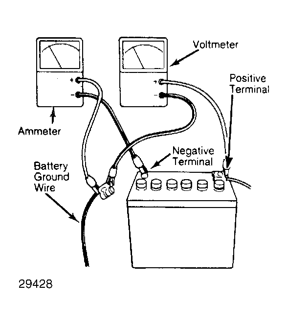 Connect a voltmeter and ammeter to battery. See Fig 1 . Use remote starter switch to crank engine. Check cranking voltage and current draw. Ensure voltage is at least 8 volts. Current draw should be less than 350 amps. Cranking speed should be above 100 RPM.