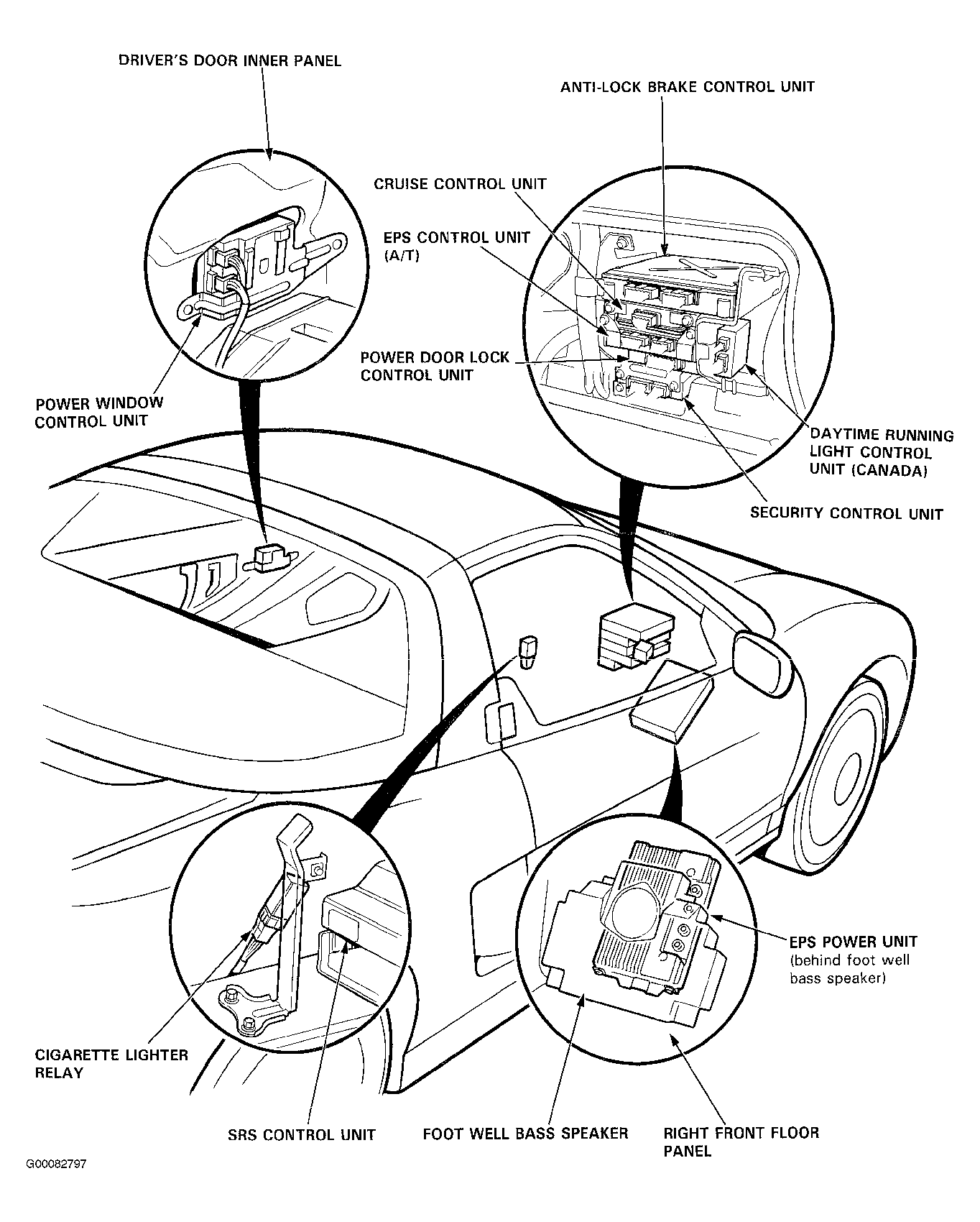 | Power Door Lock Control Unit | Behind Right Side Of Dashboard. See Figure . |
