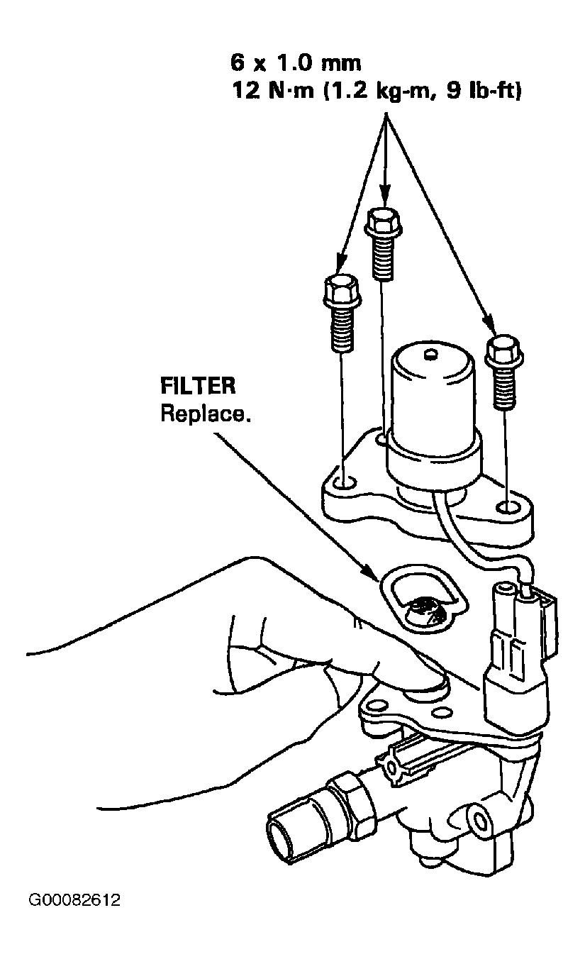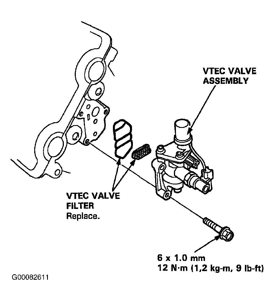 - If the resistance is within specifications, remove the VTEC valve assembly from the cylinder head, and check the VTEC valve filter for clogging. See Fig 2 . If there is clogging, replace the engine oil filter and engine oil.