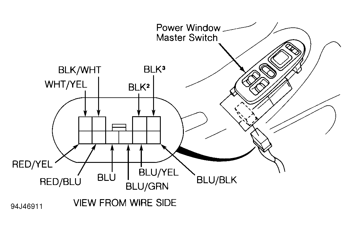 Fig 3: Power Window Master Switch Connector Terminals (4-Door)