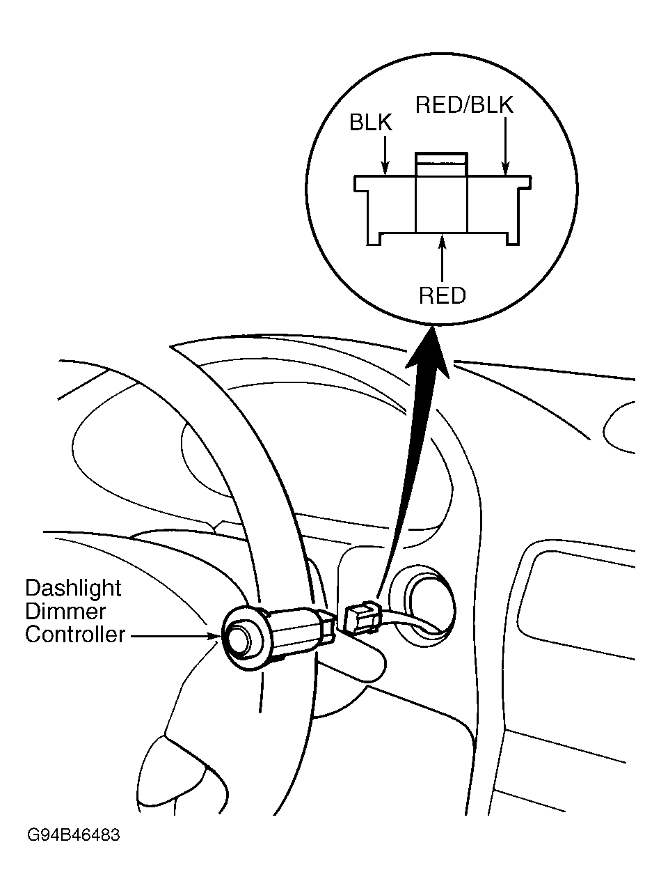 - With headlight switch on, ground Red wire. Dash lights should come on full bright. If lights are bright, circuits are okay. If dash lights still do not work correctly, replace dash light dimmer control unit. If lights do not go full bright, check condition of dash bulbs and open in Red wire. Repair as necessary.