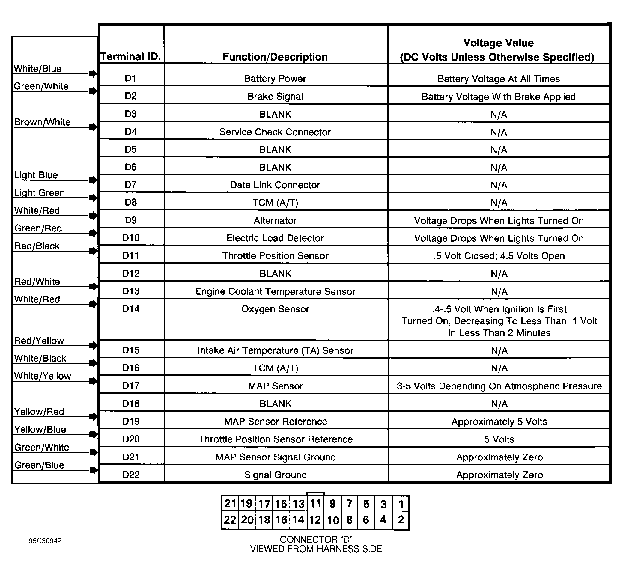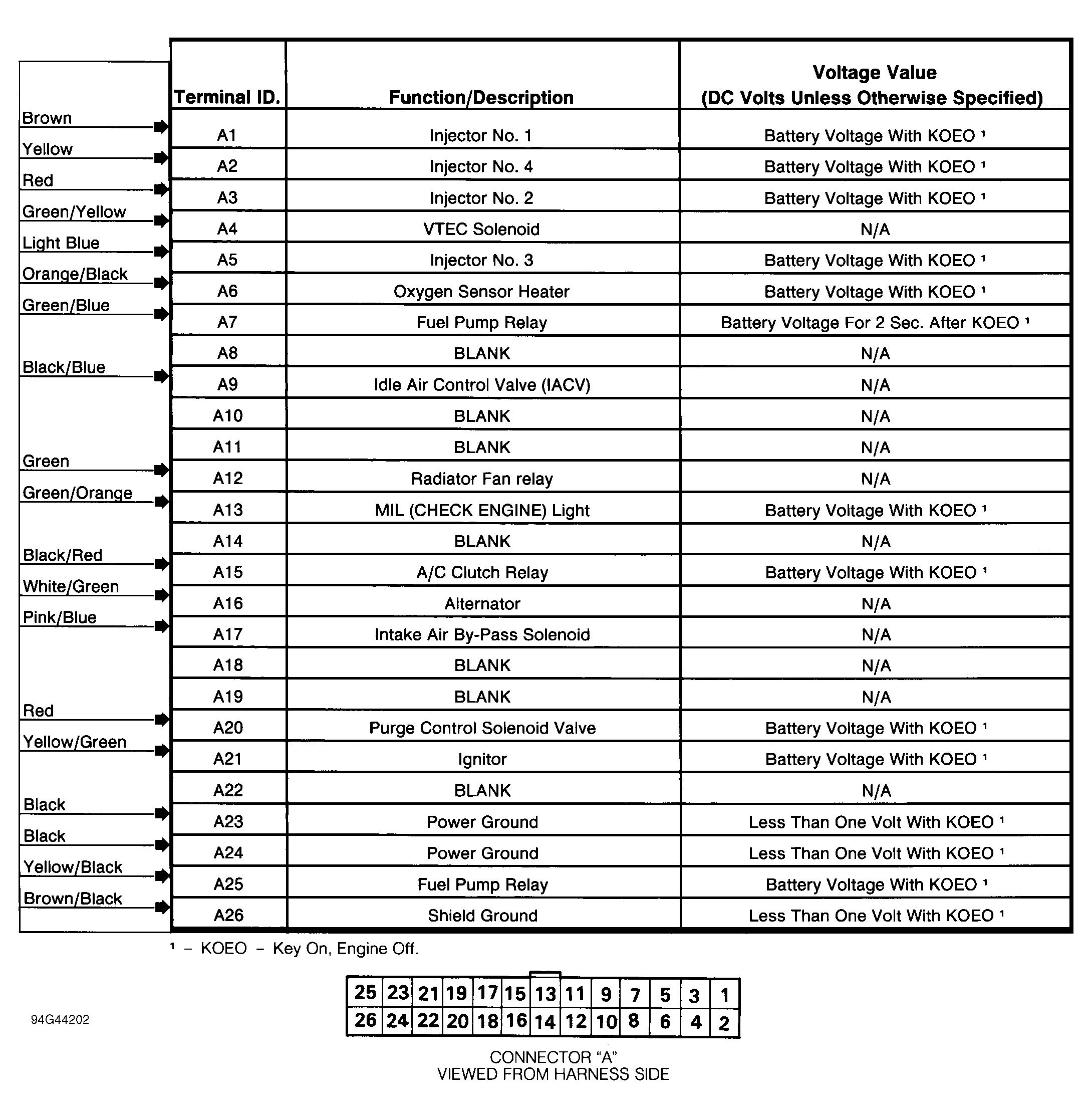 Pin voltage charts are supplied to reduce diagnostic time. Checking pin voltages at the Programmed Fuel Injection Engine Control Module (PGM-FI ECM) determines whether it is receiving and transmitting proper voltage signals. Diagnostic charts may also help determine if ECM harness is shorted or open. See Figure -Figure .