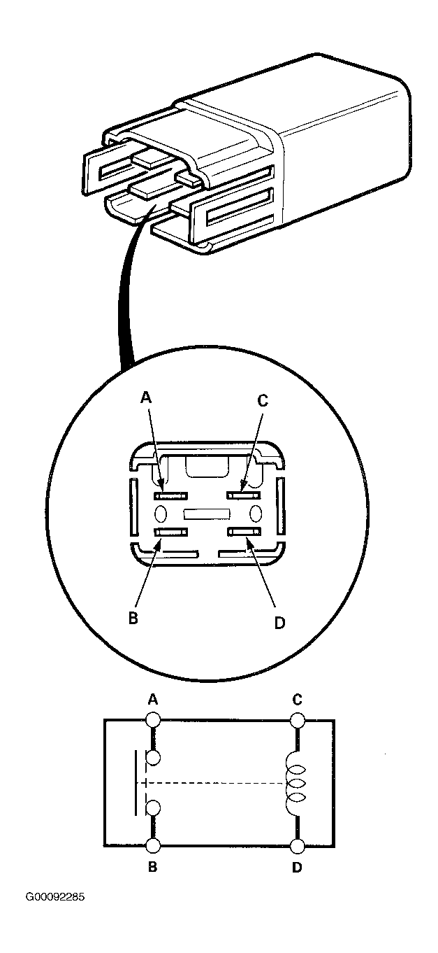 - There should be continuity between the A and B terminals when power and ground are connected to the C and D terminals.