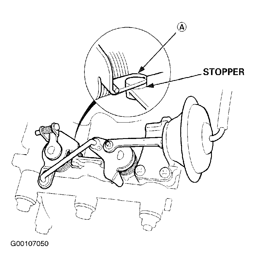 - Check that (A) of the IAB control valve is in close contact with the stopper when the vacuum hose is disconnected from the IAB control diaphragm. See Fig 4 .