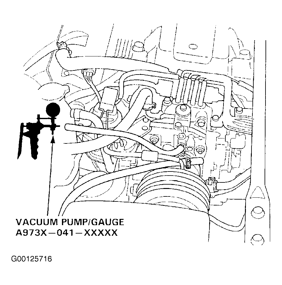 2. Disconnect the EVAP canister vacuum hose from the top of the throttle body and connect a vacuum gauge to the throttle body. See Fig 1 .
