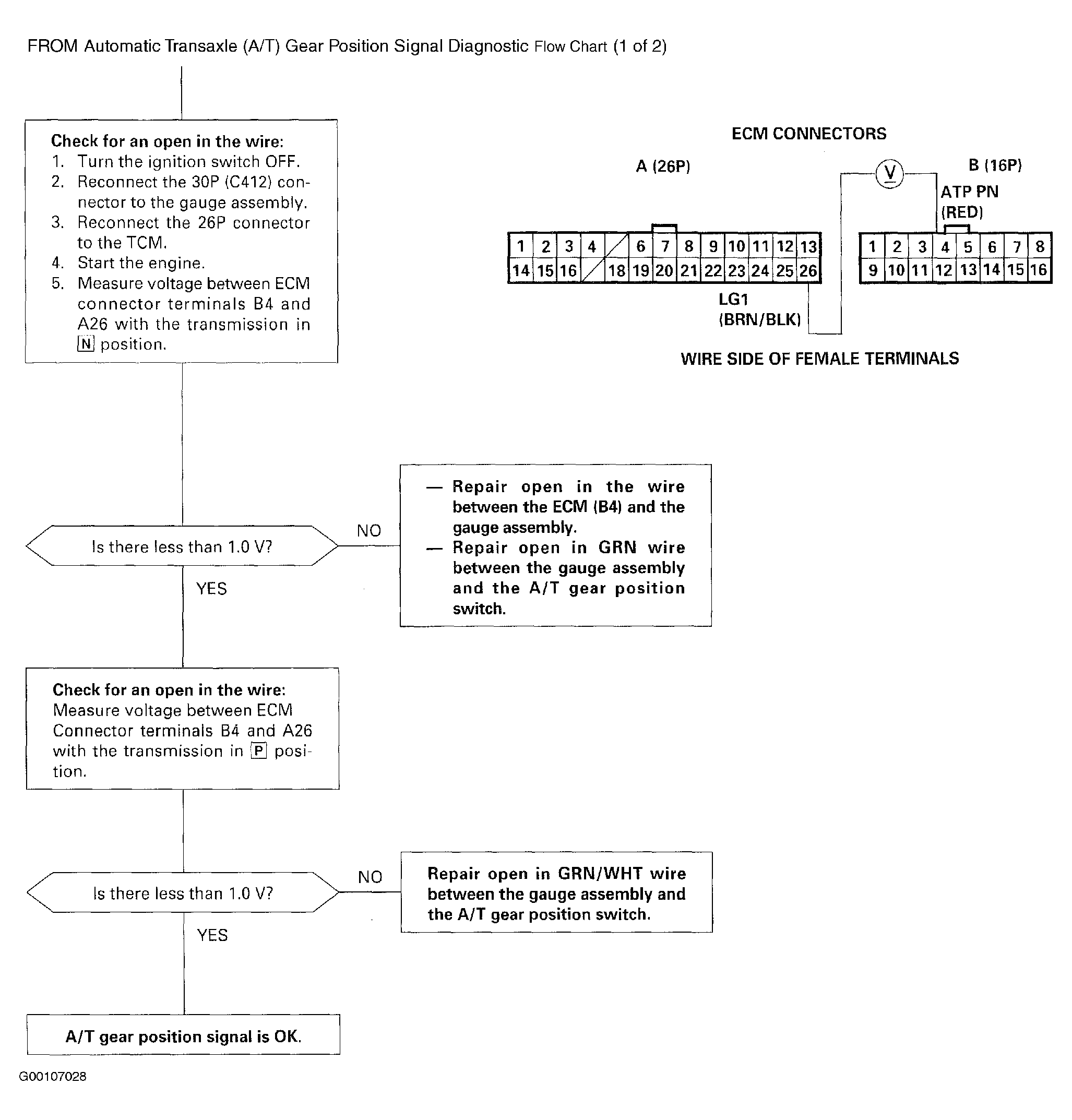 Fig 1: Automatic Transaxle (A/T) Gear Position Signal Diagnostic Flow Chart (1 Of 2)