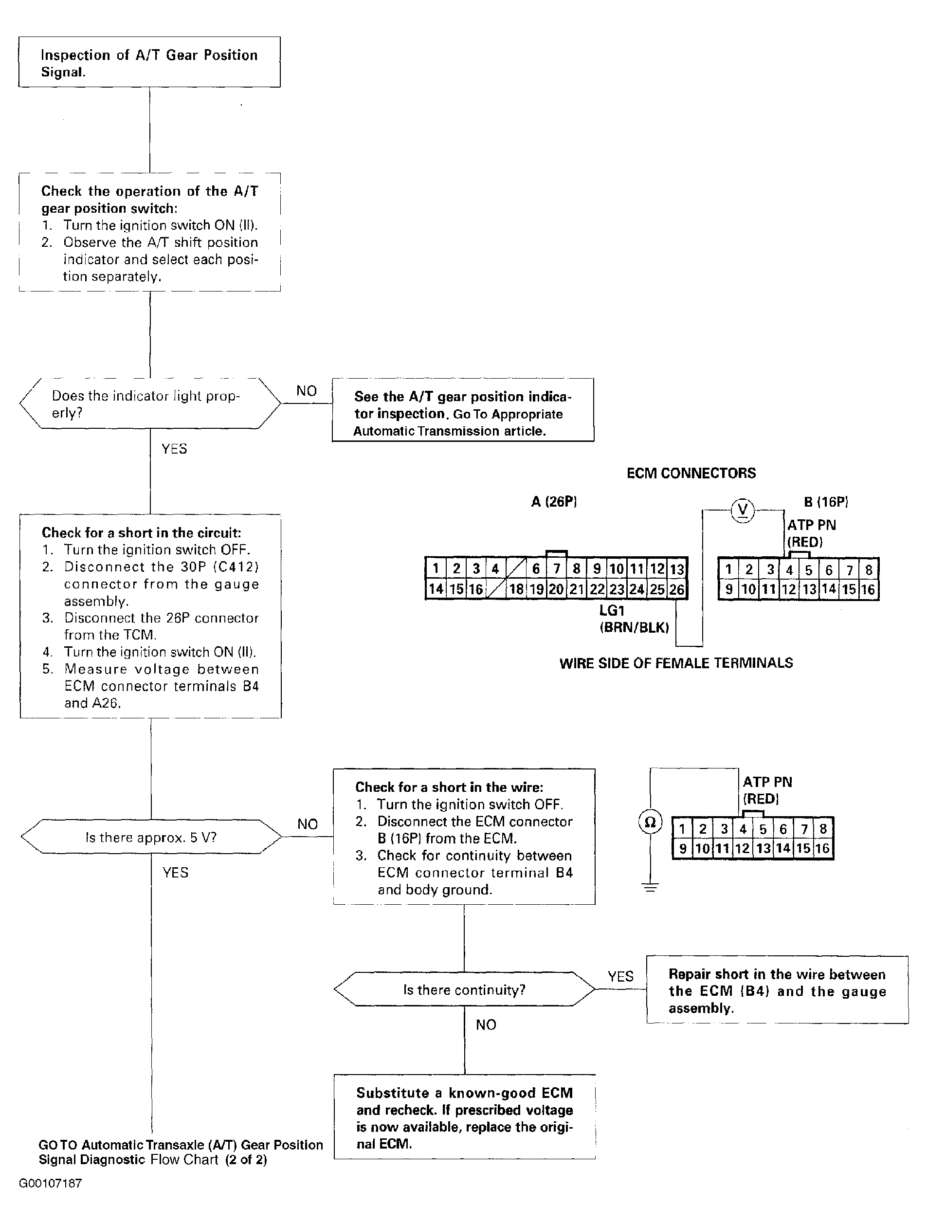 Fig 2: Automatic Transaxle (A/T) Gear Position Signal Diagnostic Flow Chart (2 Of 2)