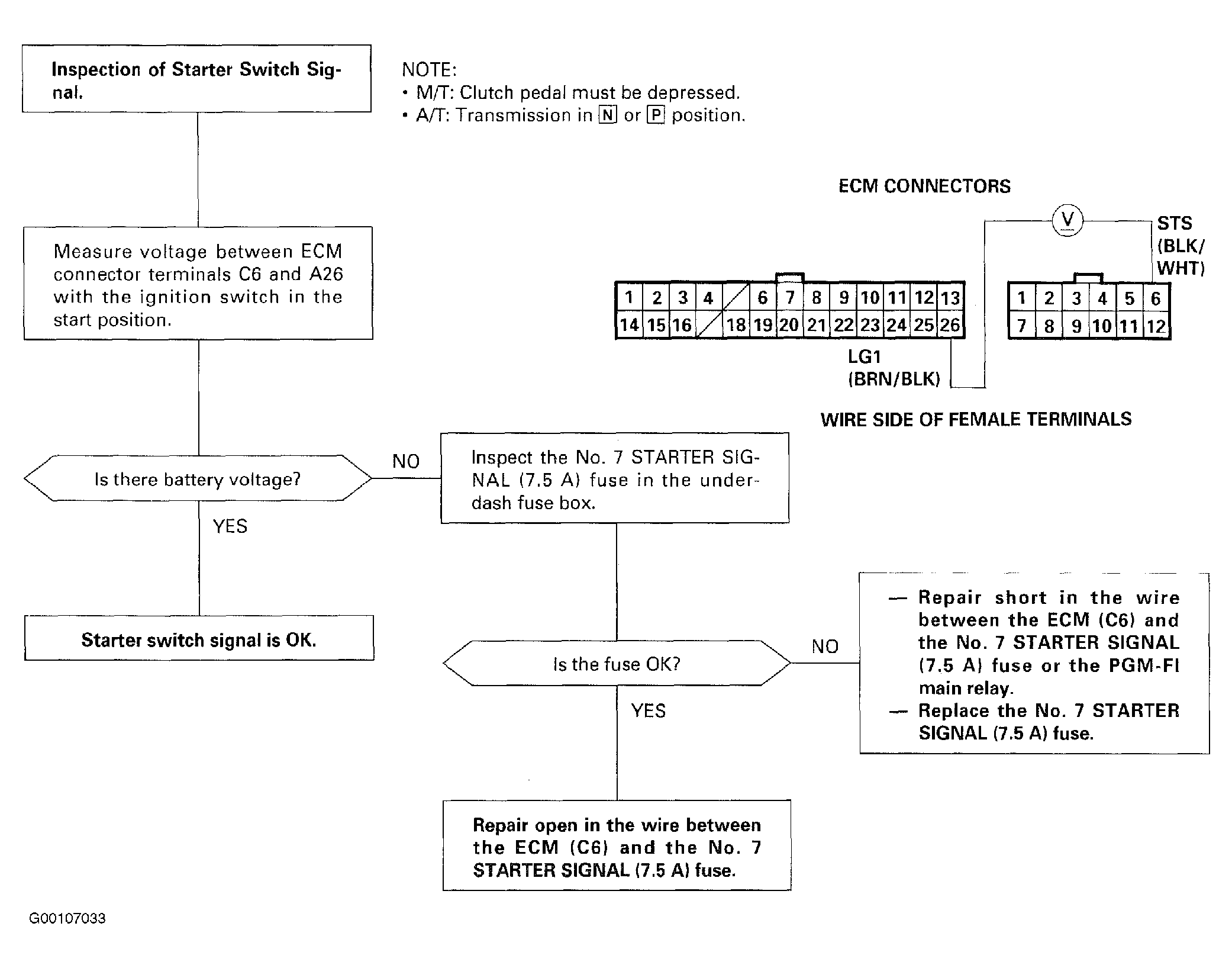 Fig 1: Starter Switch Signal Diagnostic Flow Chart