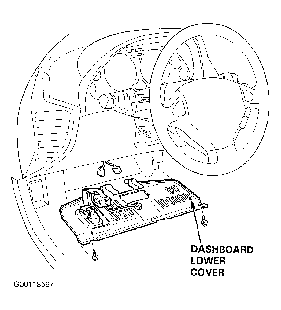 1. Remove the dashboard lower cover, and disconnect the floor wire harness connectors. See Fig 1 .
