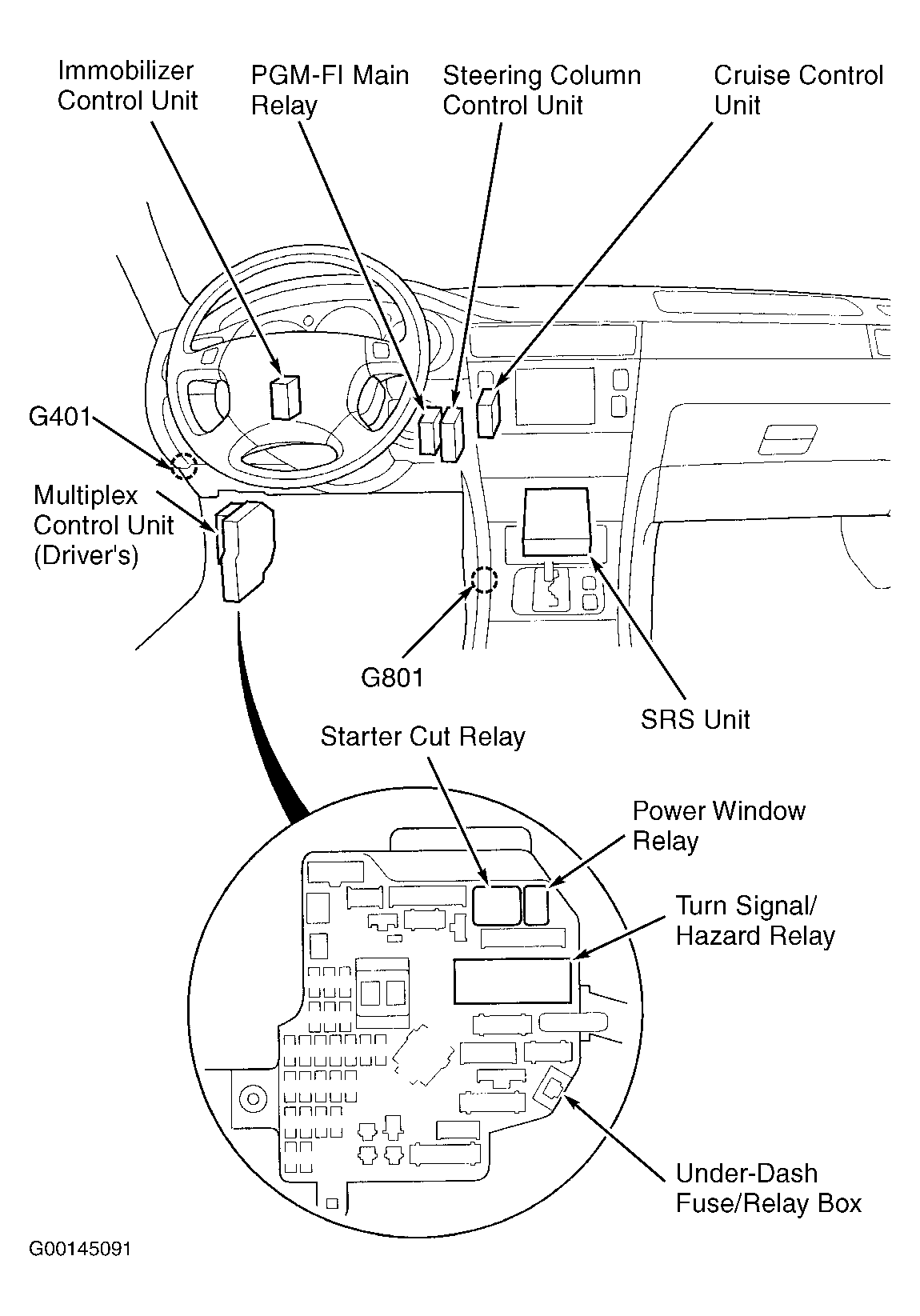 | Multiplex Control Unit (Passenger's) | Behind right kick panel. |
