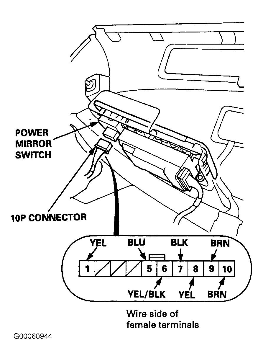 Disconnect the connectors from the power mirror switch. See