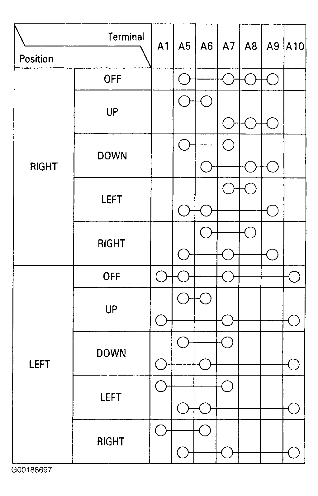 Check for continuity between the terminal in each switch position according to the table. See