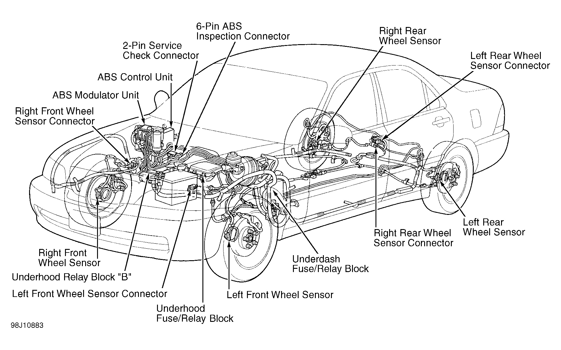 - If ABS indicator light comes on, remove ABS B2 fuse (15-amp) in underhood fuse/relay block for at least 3 seconds to erase DTC after servicing. See Figure . When ABS pump motor stops, refill brake fluid reservoir. Verify ABS indicator light stays off.