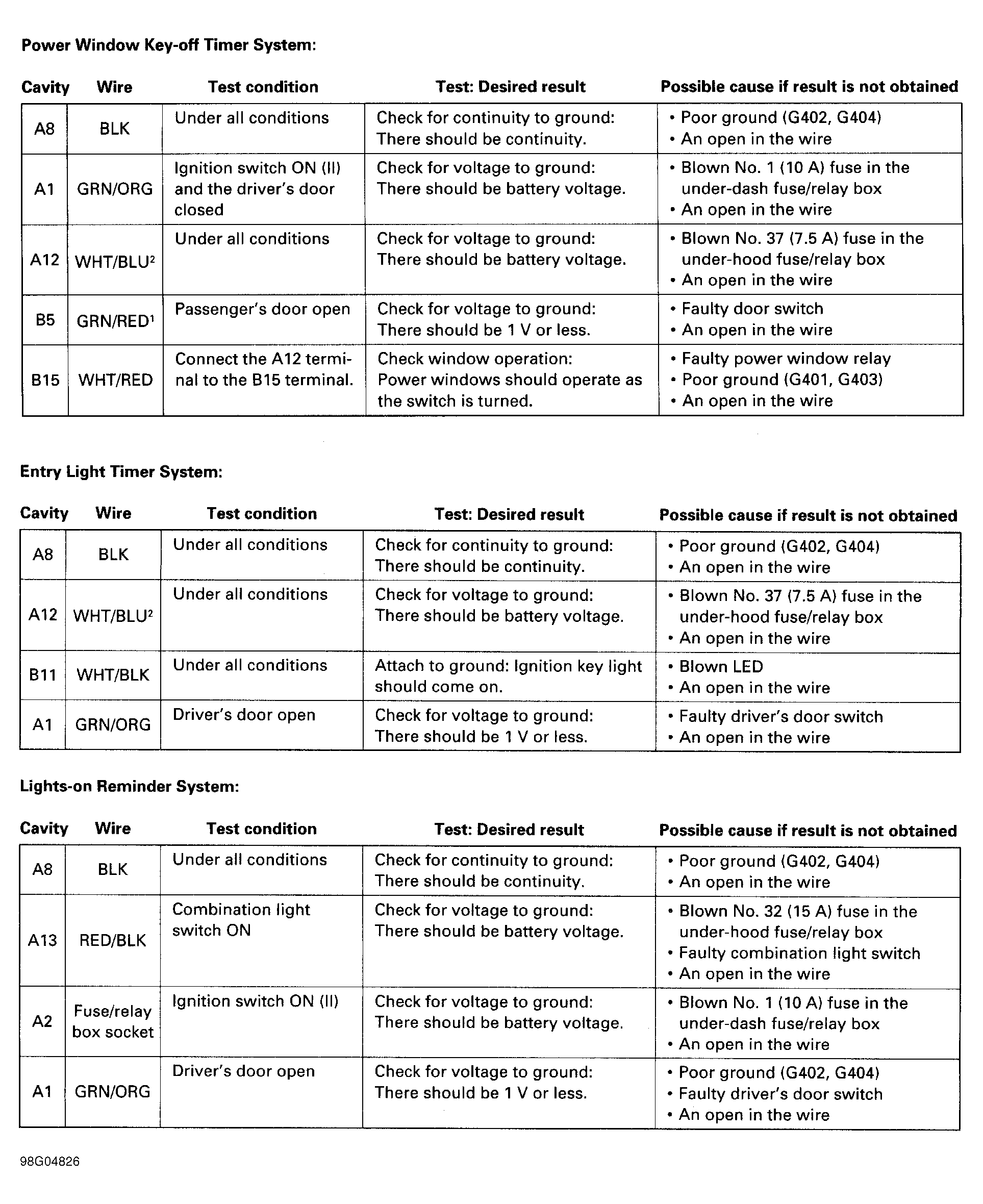 Disable air bag. See appropriate AIR BAG RESTRAINT SYSTEMS article in the ACCESSORIES/SAFETY EQUIPMENT section. Remove driver's side kick panel. Disconnect ICU 16-pin connector. Remove ICU from underdash fuse/relay box. Inspect connector terminals and ICU socket for damage. Test each circuit of ICU connector for continuity or voltage as indicated. See Fig 1 , Fig 2 and Fig 3 . Correct any problems found. If no problems are found, replace ICU.
