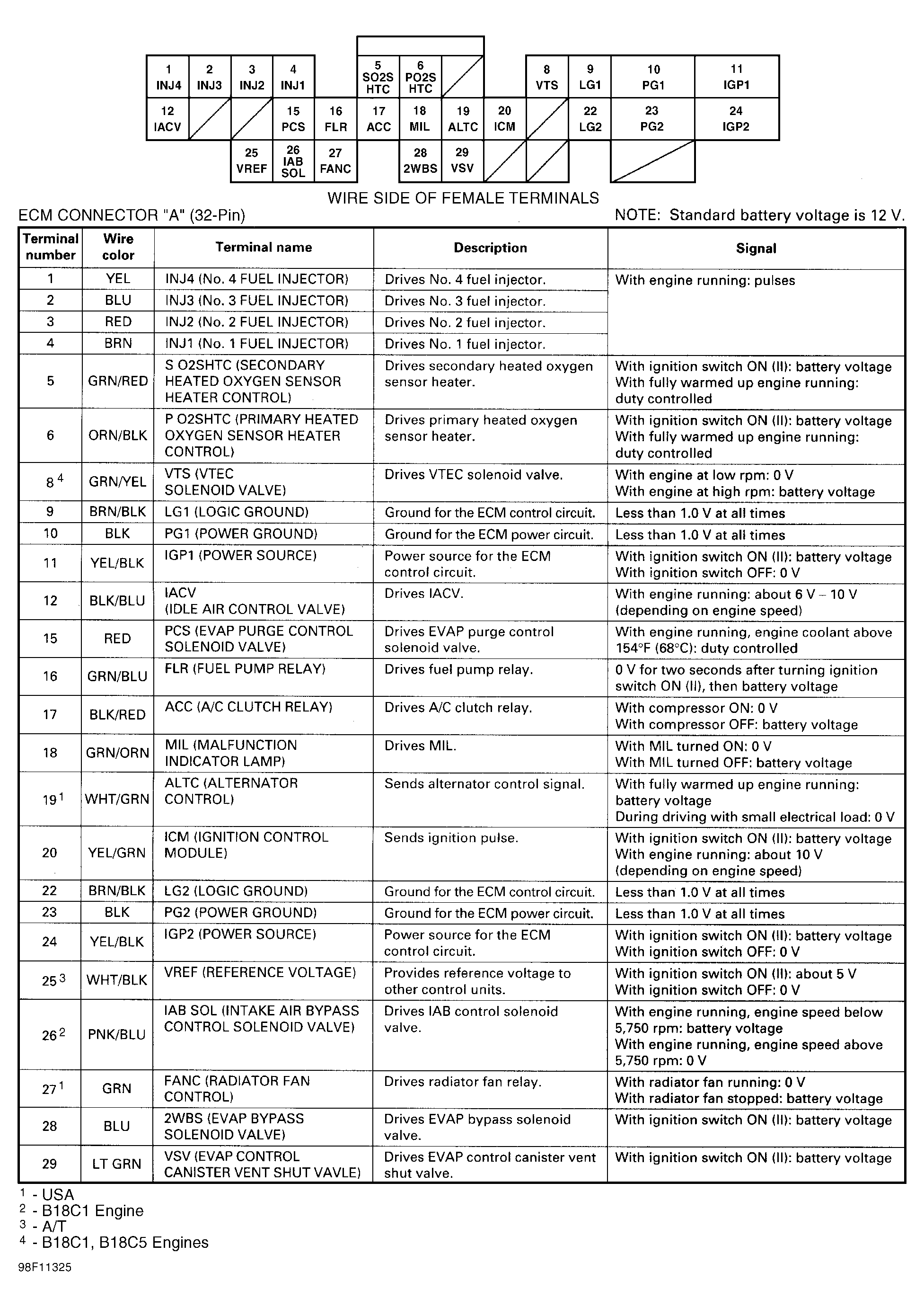 Pin voltage charts are supplied to reduce diagnostic time. Checking pin voltages at the PCM connector determines whether PCM is receiving and transmitting proper voltage signals. Diagnostic charts may also help determine if PCM harness is shorted or open. See Fig 1 -Fig 27 .