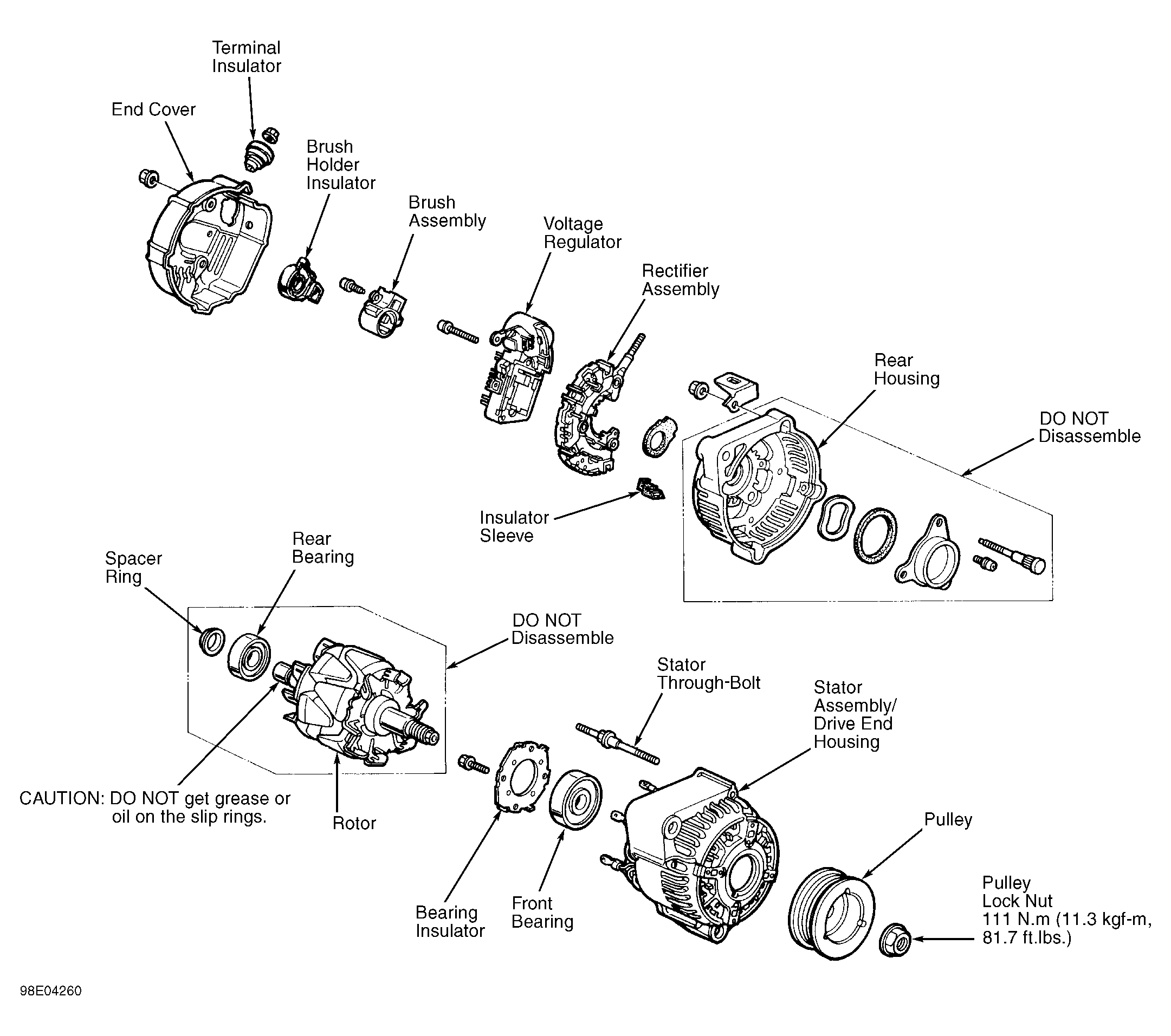 Fig 1: Exploded View Of Typical Nippondenso Generator