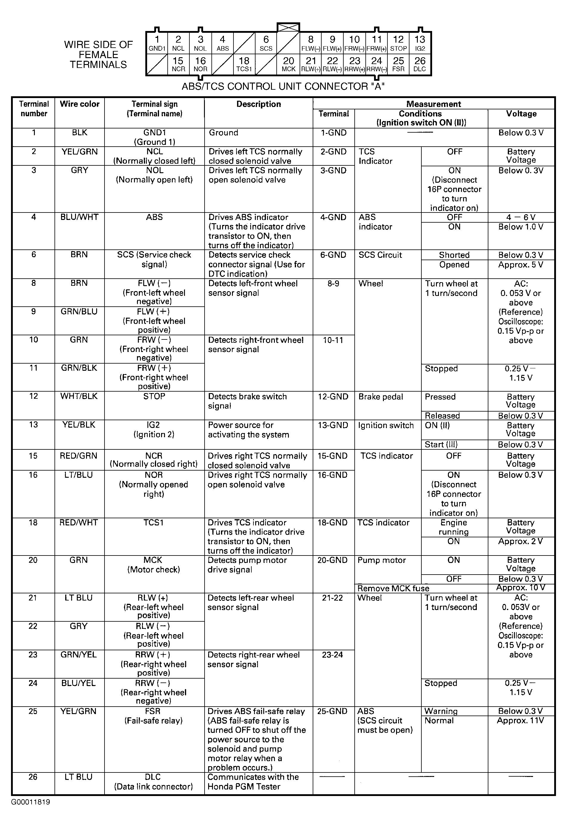 Fig 1: Identifying ABS/TCS Control Unit 26-Pin Connector "A" Terminals