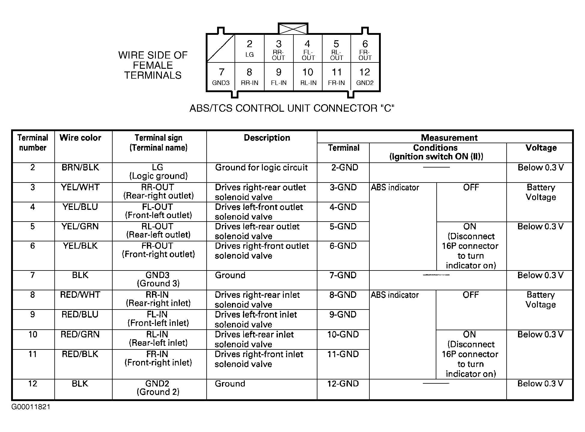 Fig 3: Identifying ABS/TCS Control Unit 12-Pin Connector "C" Terminals