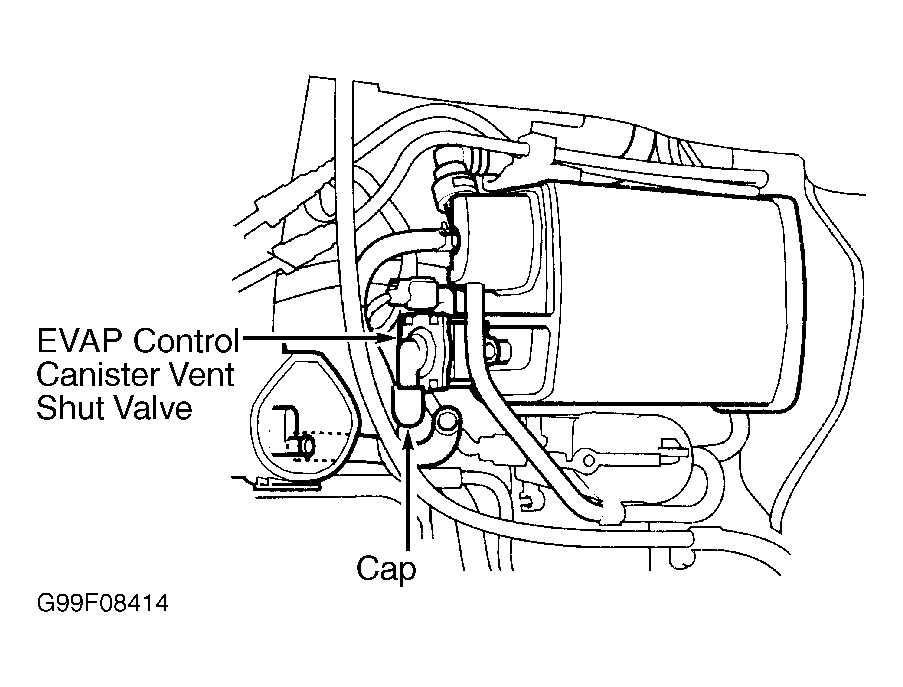 - Disconnect vacuum hose from EVAP control canister vent filter. Connect vacuum pump to disconnected hose. Connect jumper wire between PCM 32-pin connector terminal No. 4 (Light Green/White wire) and ground. Turn ignition on. Apply vacuum. If valve does not hold vacuum, go to next step. If valve holds vacuum, EVAP canister vent shut valve is okay. Go to step 10.