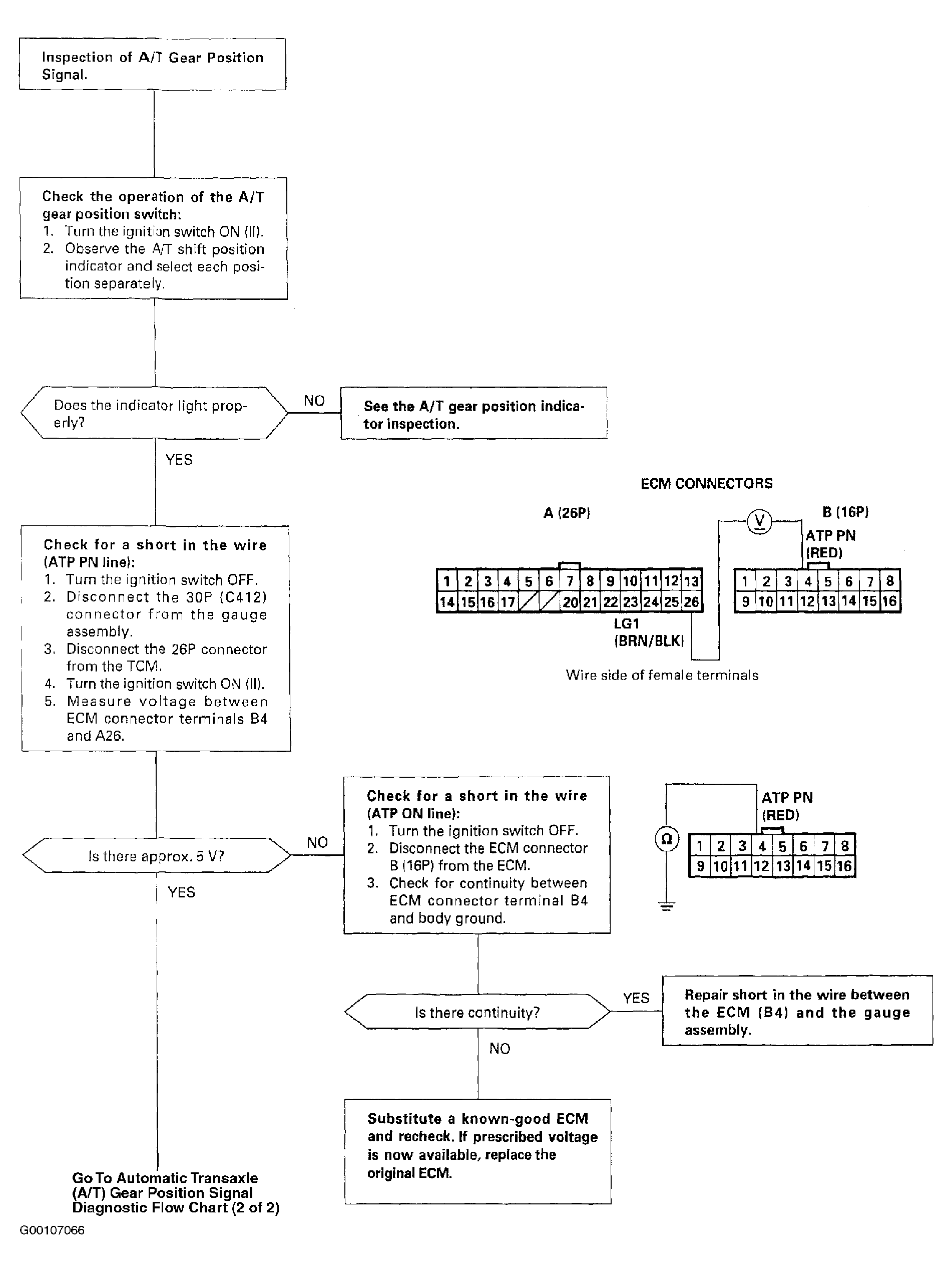 This signals the ECM when the transmission is in Neutral or Park. For troubleshooting of the A/T shift position signal circuit, see Fig 1