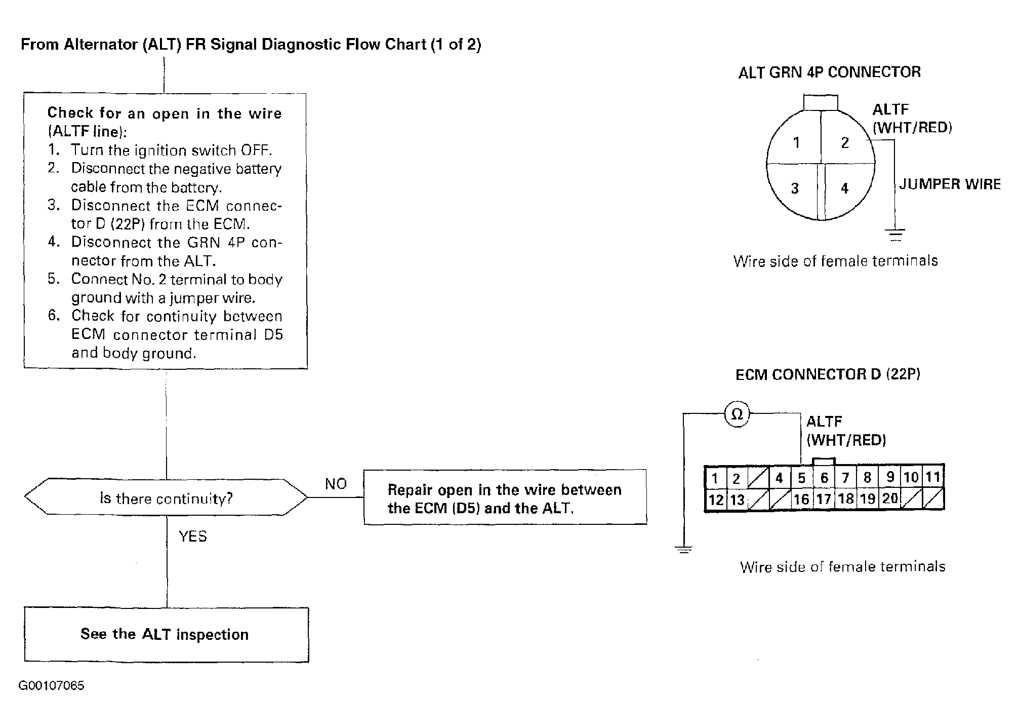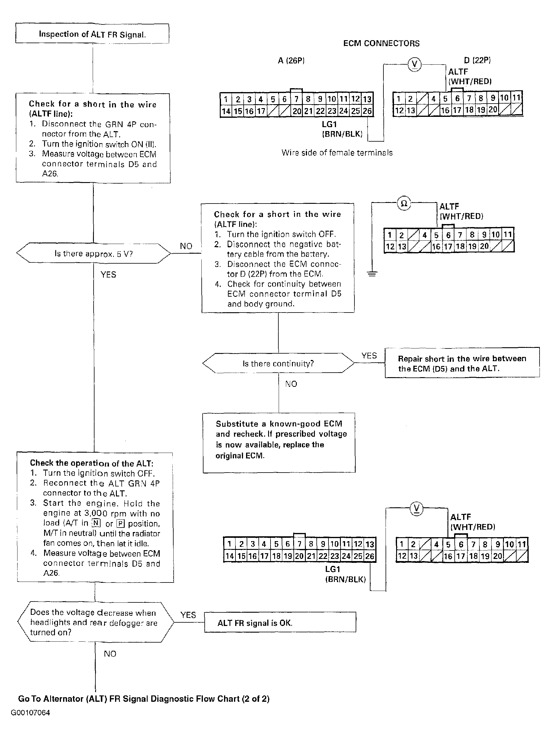 This signals the ECM when the alternator (ALT) is charging. For troubleshooting of the ALT FR signal circuit, see Fig 1