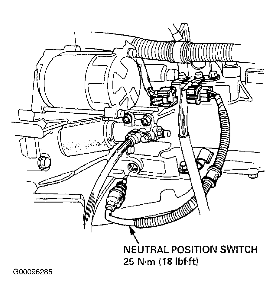 .M/T neutral switch is located on bottom of transaxle, below the slave cylinder. See Fig 1