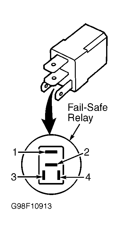With relay disconnected, use DVOM to check continuity between relay terminals No. 1 and 3. See Fig 1. Continuity should not exist. Apply battery voltage across terminals No. 2 and 4. Continuity should exist between terminals No. 1 and 3. If continuity is not as indicated, replace relay.