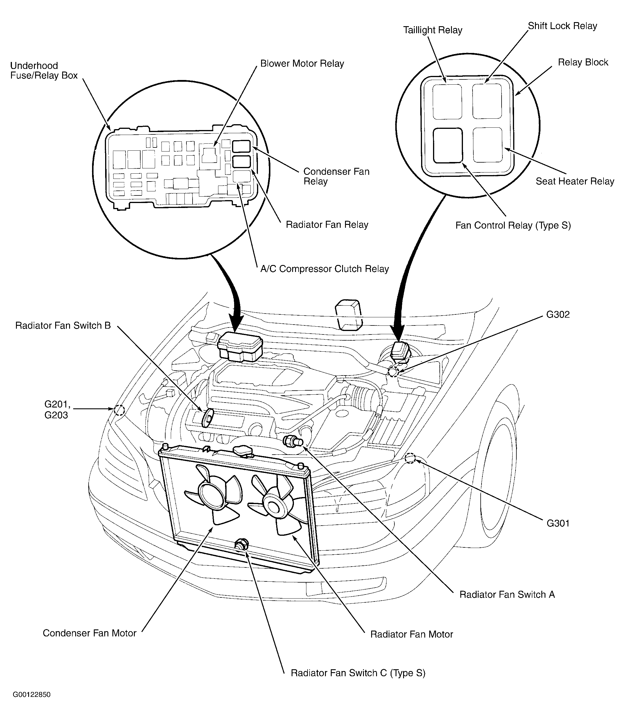 Relay Block At left rear corner of engine compartment. See Figure .