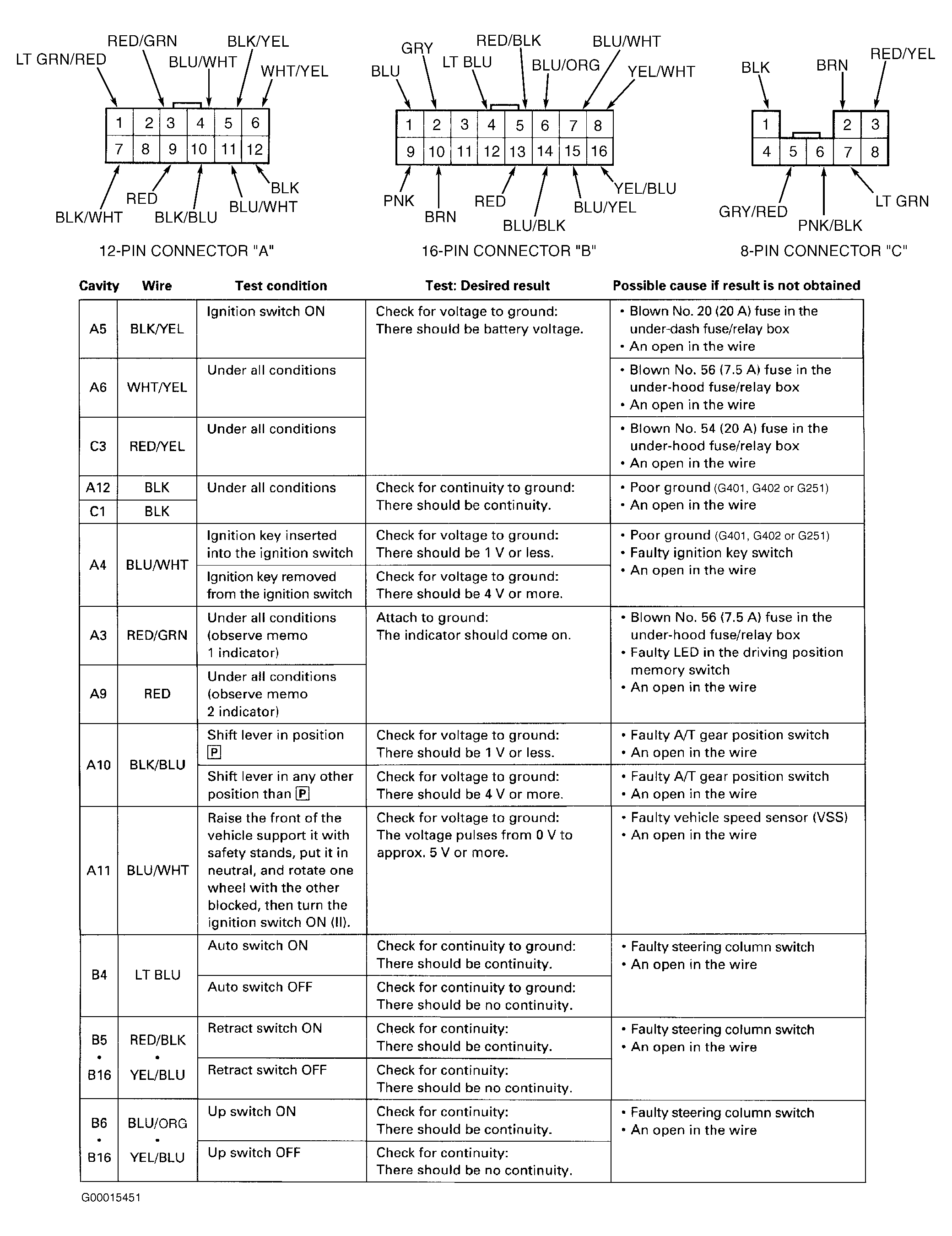 Home >> Acura >> 2001 >> 3.5RL >> Repair and Diagnosis >> Steering >> Steering Column >> Driver's Position Memory Systems >> System Tests >> Steering Column Control Unit Input