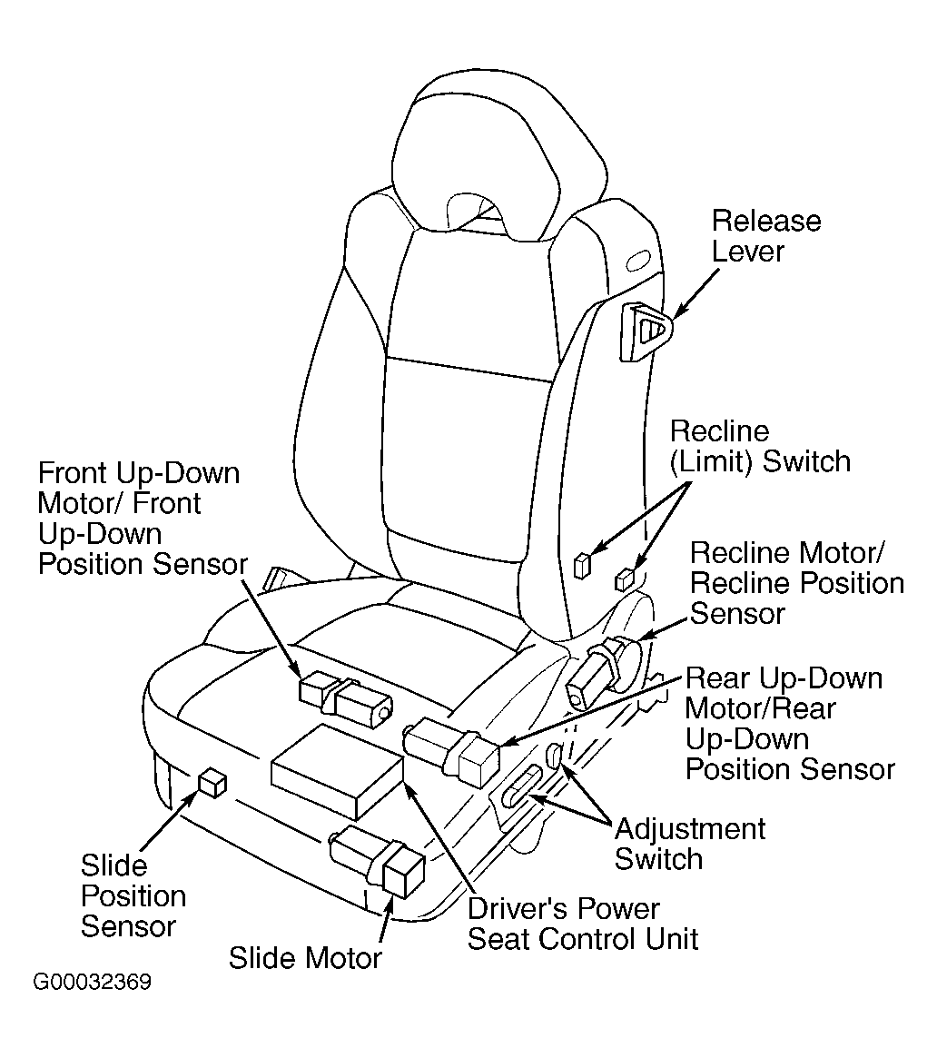 On driver's seat, 4 motors provide for front up/down, rear up/down, forward/back, and recline adjustment. See Fig 1 . Each motor includes a reed-switch sensor, which sends a pulse signal to DPMS control unit to indicate motor position.