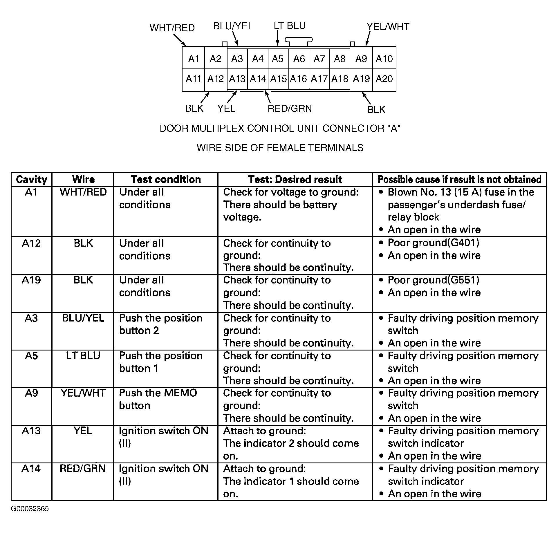 Home >> Acura >> 2002 >> 3.2CL Base >> Repair and Diagnosis >> Body & Frame >> Mirrors >> Driver's Position Memory System >> System Tests >> Door Multiplex Control Unit