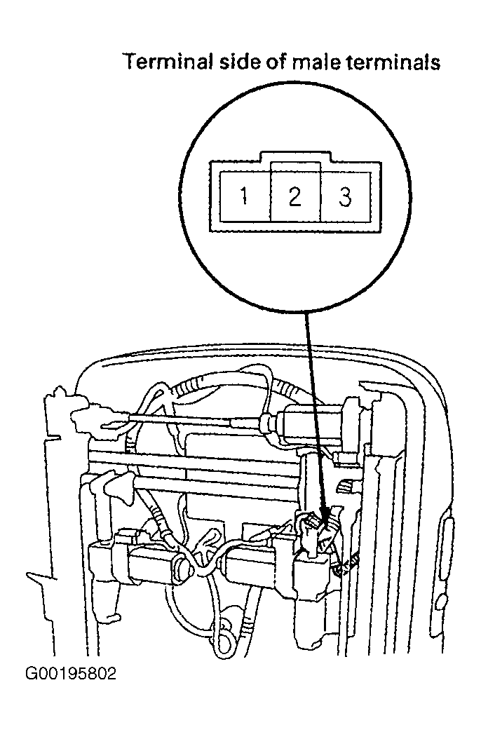 Remove power seat adjustment switch cover. See FRONT SEATS  under REMOVAL & INSTALLATION. Disconnect 3-pin connector from recline switch. See Fig 1 . Using a DVOM, check for continuity between terminals. When seat is tilted forward fully, continuity should exist between terminals No. 3 and 2. When seat is tilted back fully, continuity should exist between terminals No. 1 and 2. If continuity is not as specified, replace limit switch.