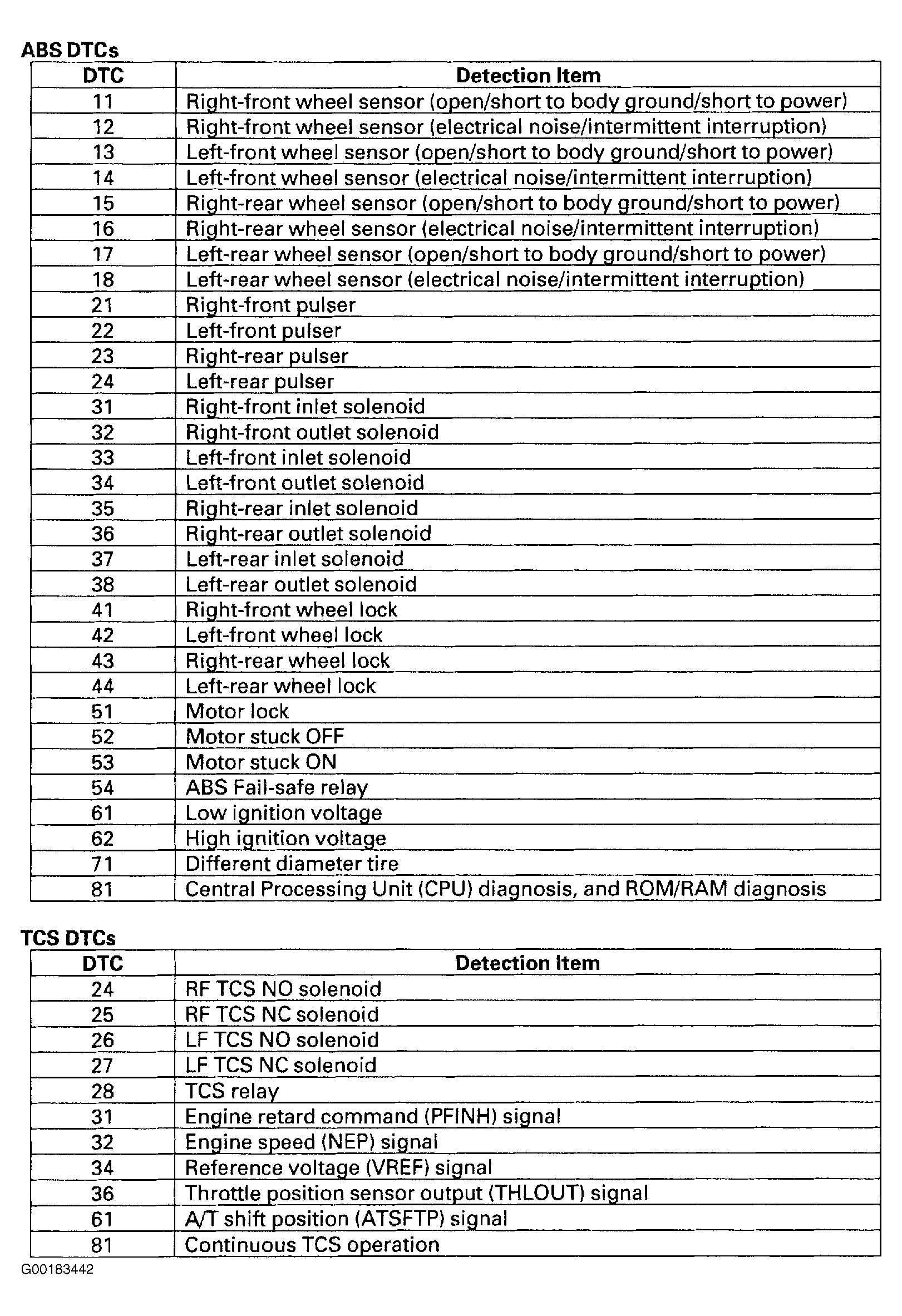 | DTC 11, 13, 15 & 17 | WHEEL SENSOR & OPEN/SHORT-TO-BODY GROUND/SHORT-TO-POWER |
