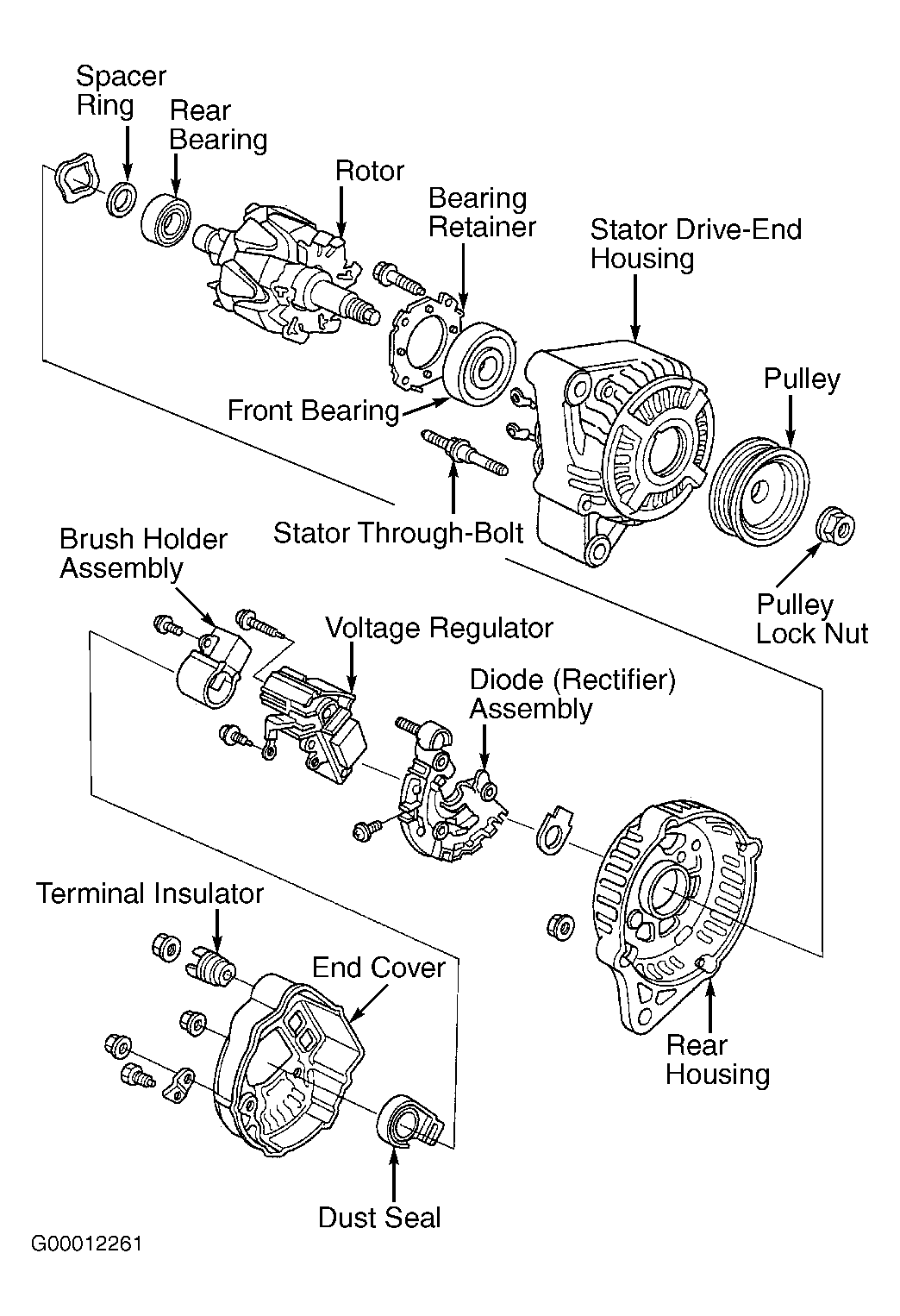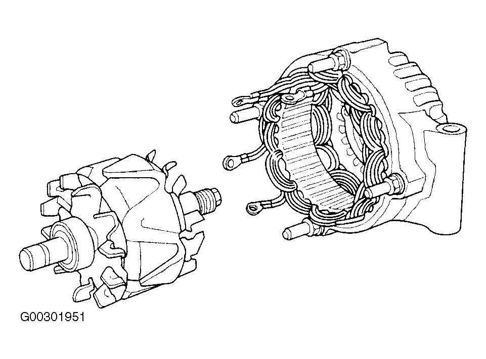 - Inspect the rotor shaft for scoring, and inspect the bearing journal surface in the stator housing for seizure marks. If either the rotor or stator housing is damaged, replace the alternator. If both the rotor and the stator housing are OK, go to next step.