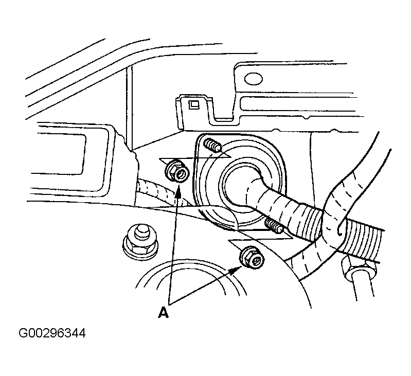 - Install the rear mount bracket (A) (A/T). See Figure.
