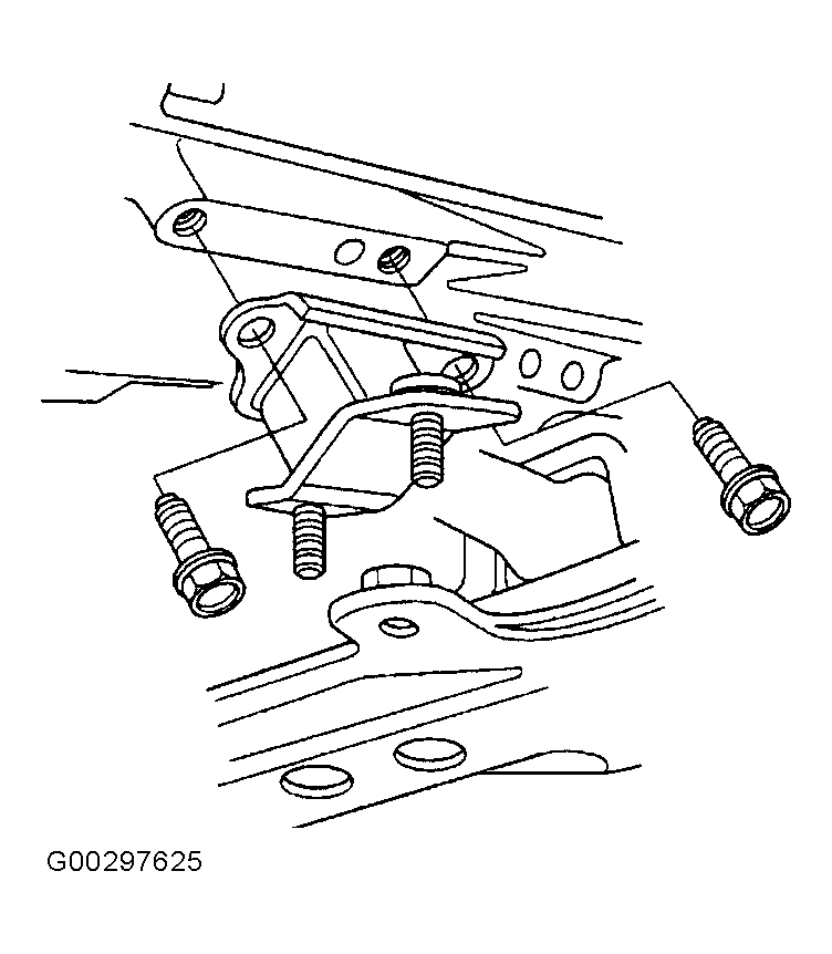 - Tighten the transmission lower mount nuts (A/T). See TORQUE SPECIFICATIONS and Figure.