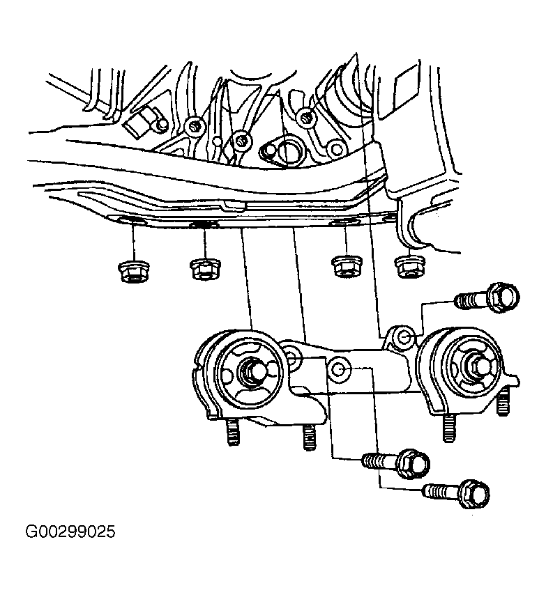 - Install the transmission mount/beam assembly (M/T). See Figure.